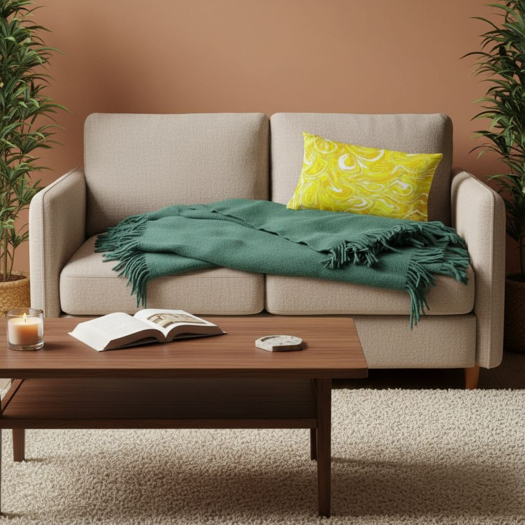 Art for the Home: Vibrant Yellow Abstract Throw Pillow by Kiva Rakosi – Primary Colors Collection